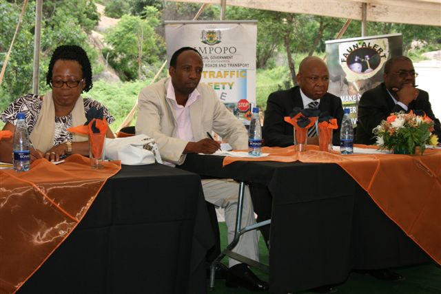 Left to right, Aganang Mayor Cllr Mmanoko Masehela, Kgoshi Mashashane, MEC for roads and transport Cassel Mathale and CDM executive mayor Cllr Motalane Monakedi taking notes